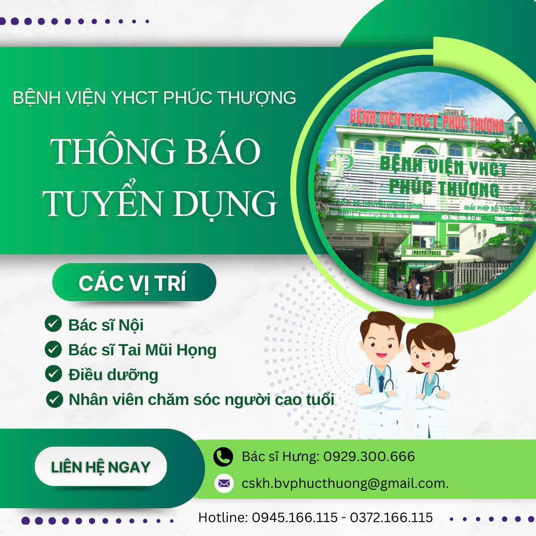 BỆNH VIỆN YHCT PHÚC THƯỢNG THÔNG BÁO TUYỂN DỤNG