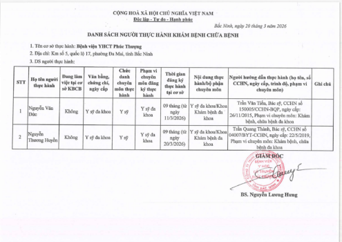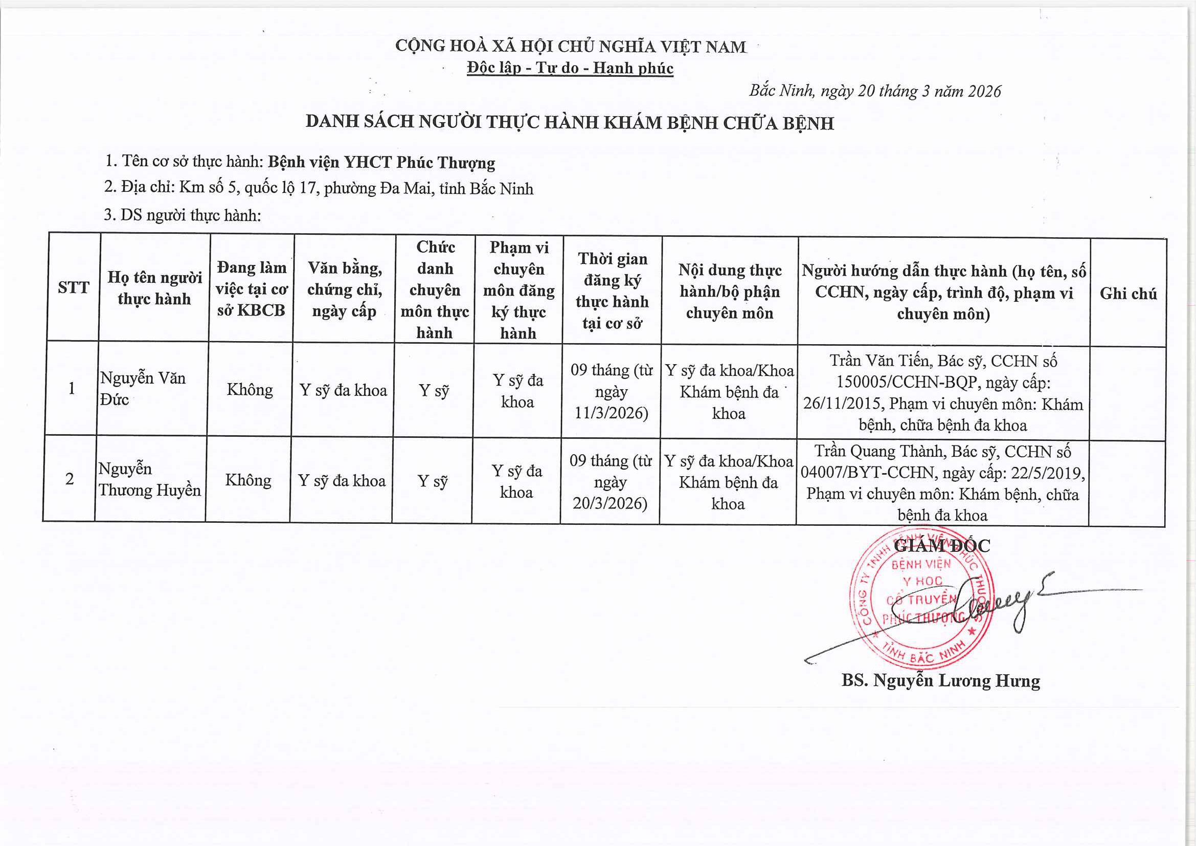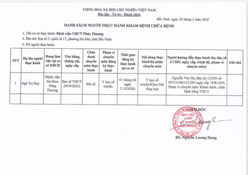 DS người thực hành khám bệnh chữa bệnh 20.03.2026