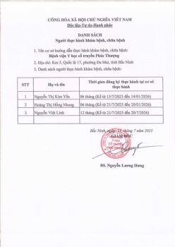 Danh sách người thực hành Khám bệnh, chữa bệnh T7/2025