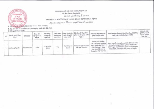 Danh sách người thực hành khám bệnh chữa bệnh